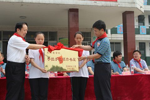孔祥湖與學(xué)員代表張明倫,姚來新與學(xué)員代表劉貴明分別為“全國少工委手拉手紅領(lǐng)巾書屋”、“長江商學(xué)院手拉手紅領(lǐng)書屋”揭牌。