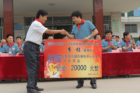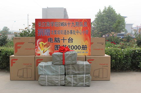 儀式上,長江商學(xué)院EMBA十九期28名學(xué)員為北集坡中心小學(xué)捐贈了“手拉手紅領(lǐng)巾書屋”,其中圖書2000冊、電腦10臺;學(xué)員代表、眾誠礦山股份公司董事長季楨捐贈了價值兩萬元的體育器械。