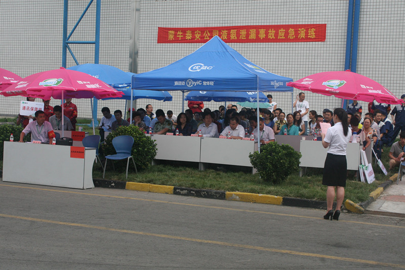 6月21日,由高新區管委會、蒙牛乳業公司聯合舉辦的危險化學品泄漏應急救援演練在蒙牛乳業公司液氨球罐區舉行。